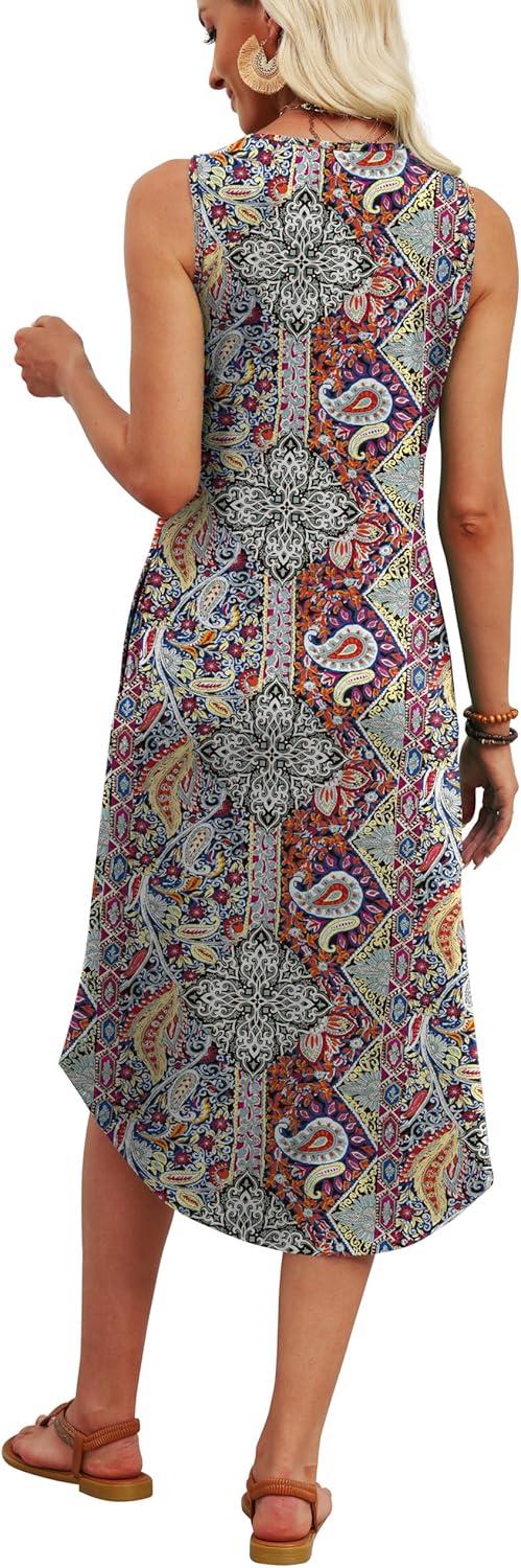WIHOLL Summer Dresses for Women Button Front Sleeveless Casual Midi Dress Beach Vacation Sundresses with Pockets(Boho Paisley Print)