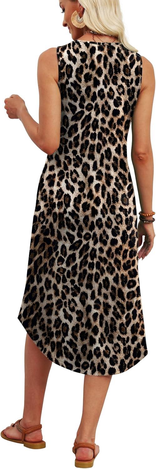 WIHOLL Summer Dresses for Women Button Front Sleeveless Casual Midi Dress Beach Vacation Sundresses with Pockets(Leopard Print)