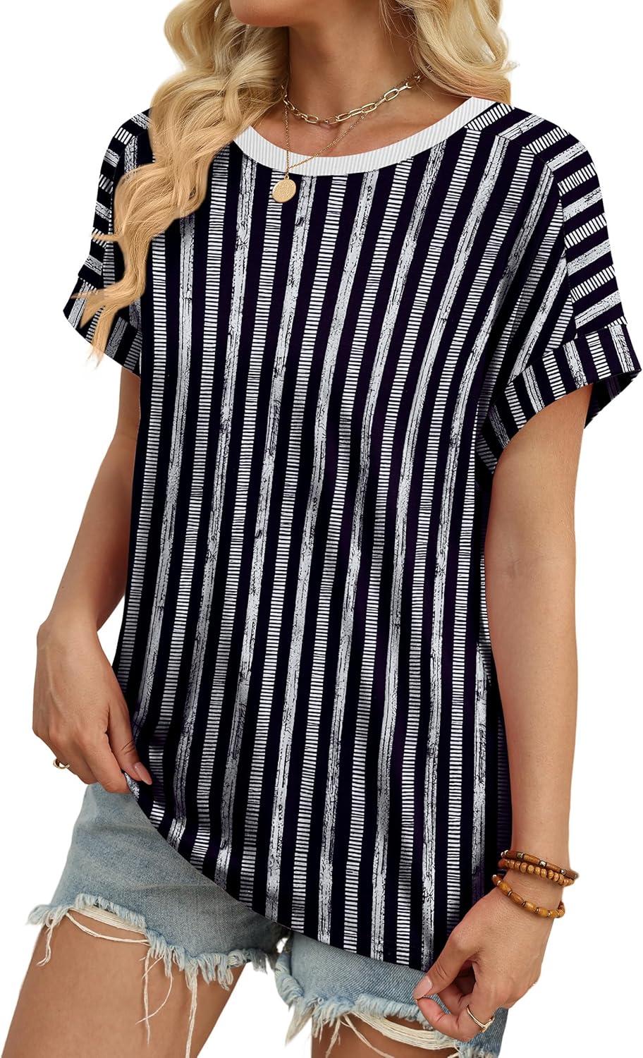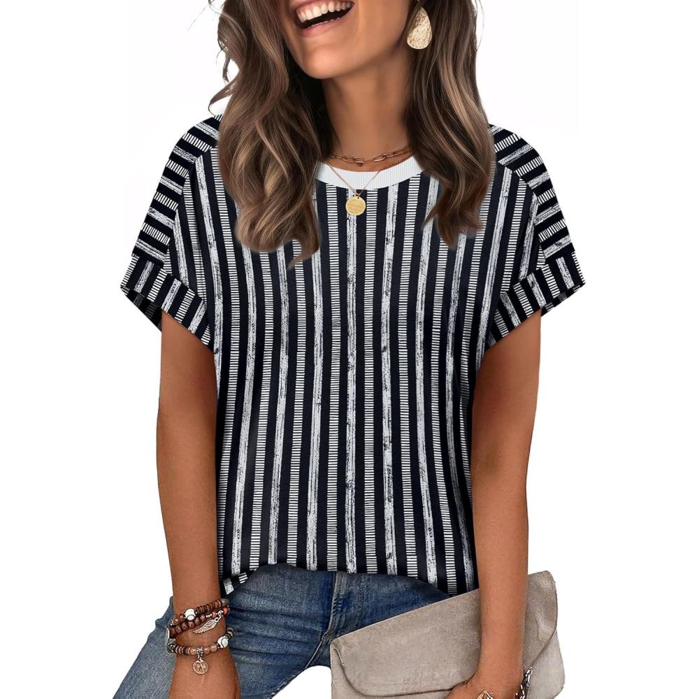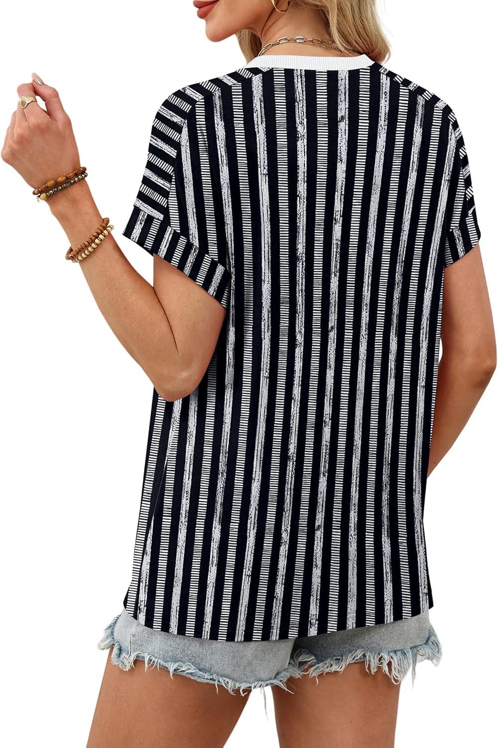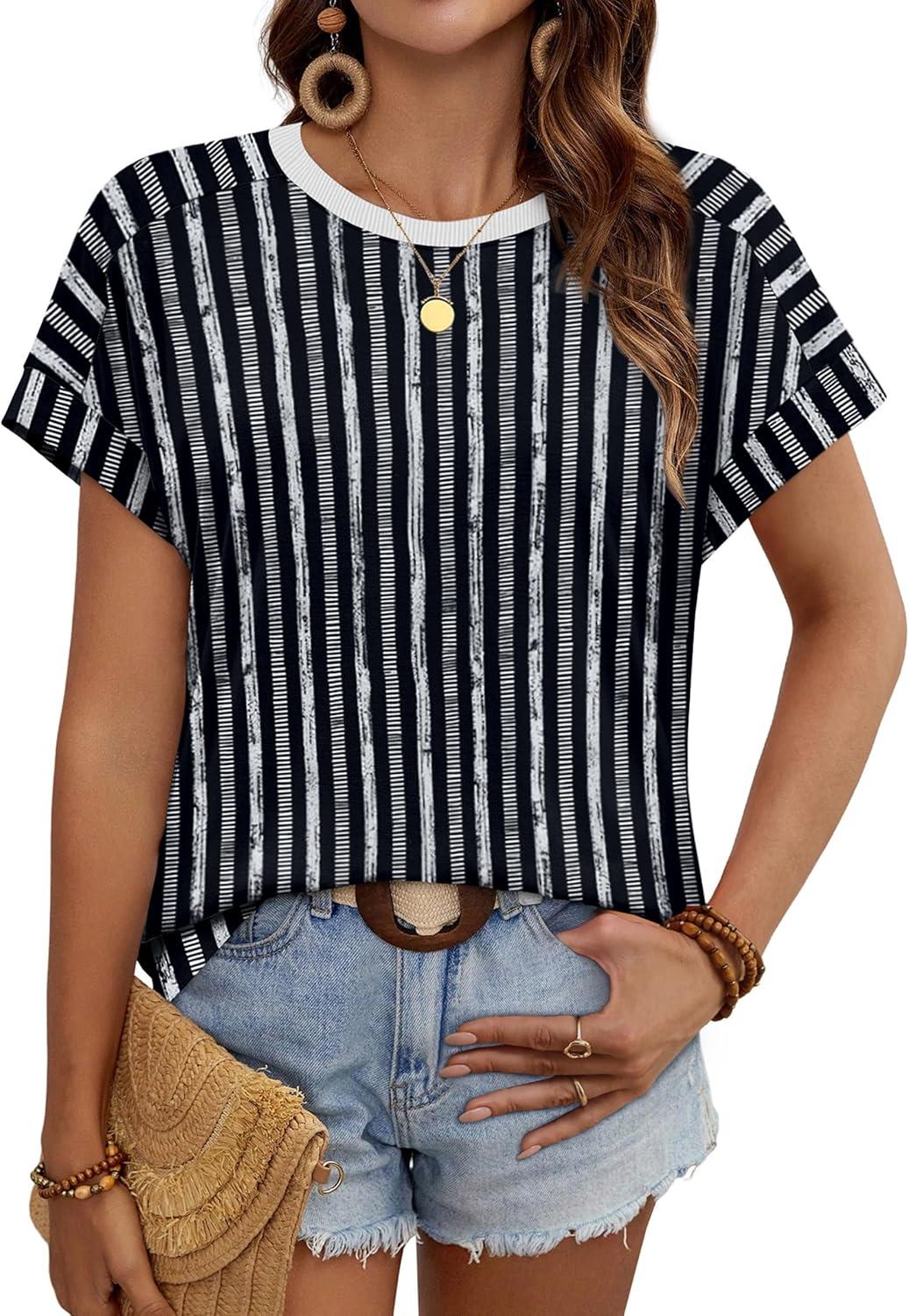 WIHOLL Womens Tops Short Sleeve Shirts Summer Outfits 2026 Spring Dressy Casual Clothes Clothing(Black Stripes)
